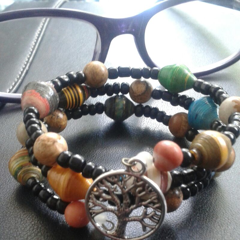 Kushukuru style bracelet, designed from Uganda paper beads and accented with assorted spacer beads.