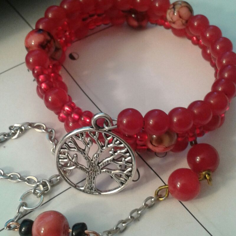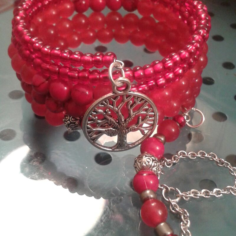 Designed with red Jasper gemstones, with silver plated chain link.