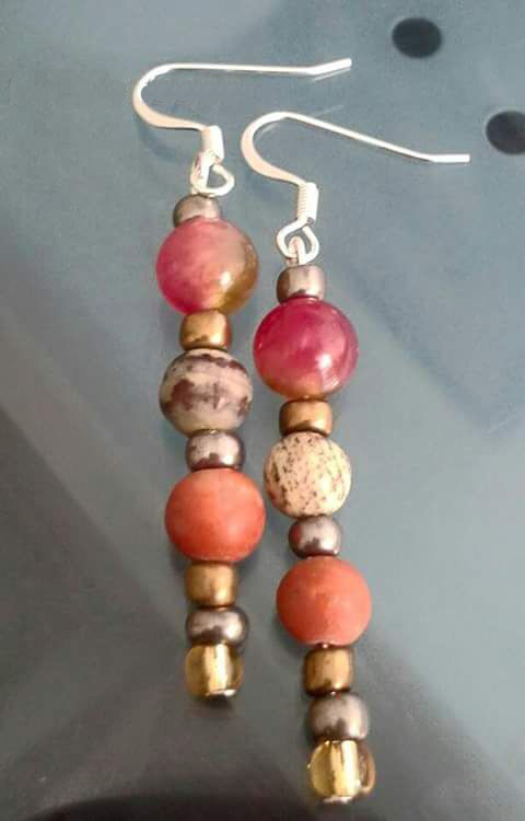 Drop earrings,designed with Red Jasper and Picture Jasper. Match with the Constance coiled stacked bracelet.
