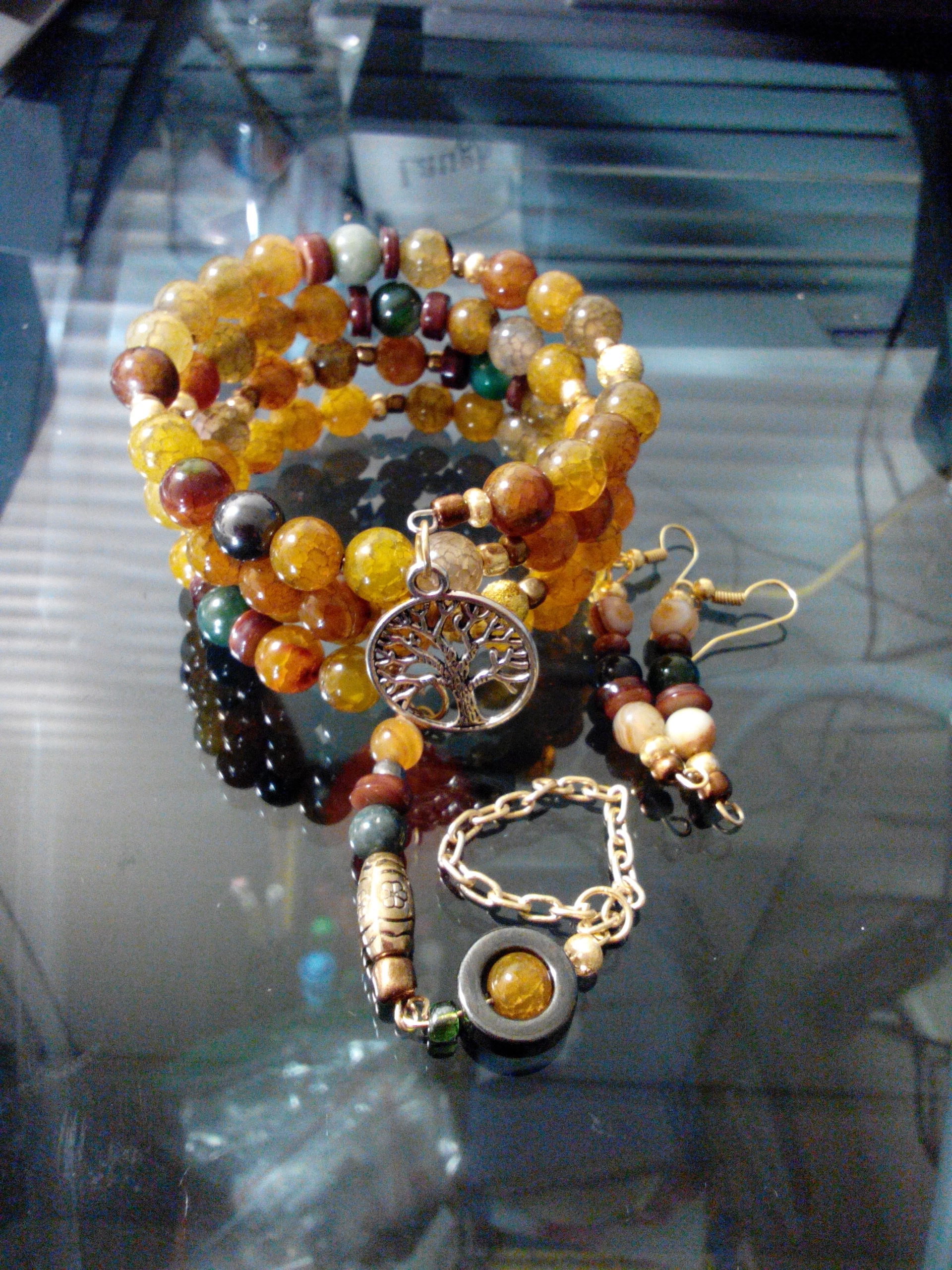 The natural ( 8mm ) gemstone featured here is Yellow Dragon Vein Agate.