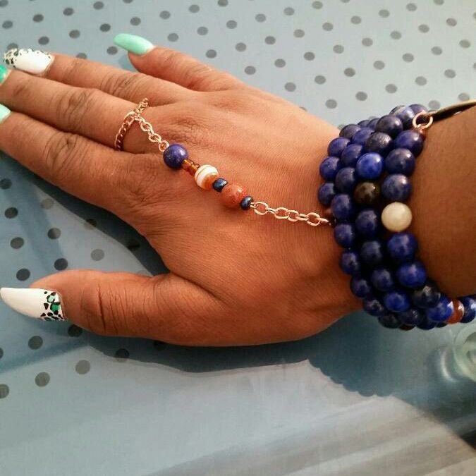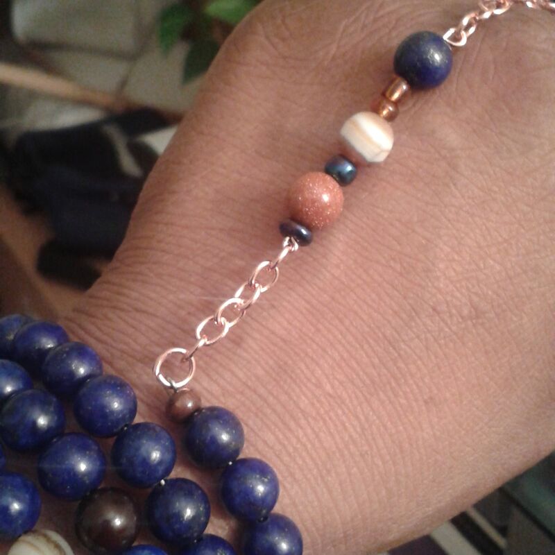 Designed with Lapis with accents of gold sand gemstones and amber spacer beads.