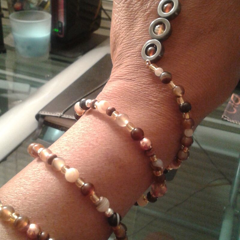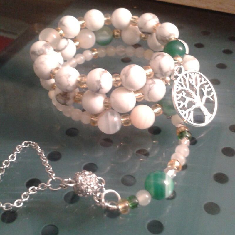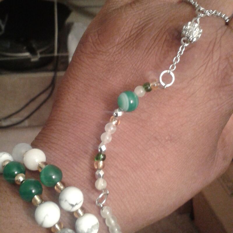 Out of Stock. 6mm,Designed with White Turquoise gemstones and Green striped Agate with accents of Silver and silver plated chain link