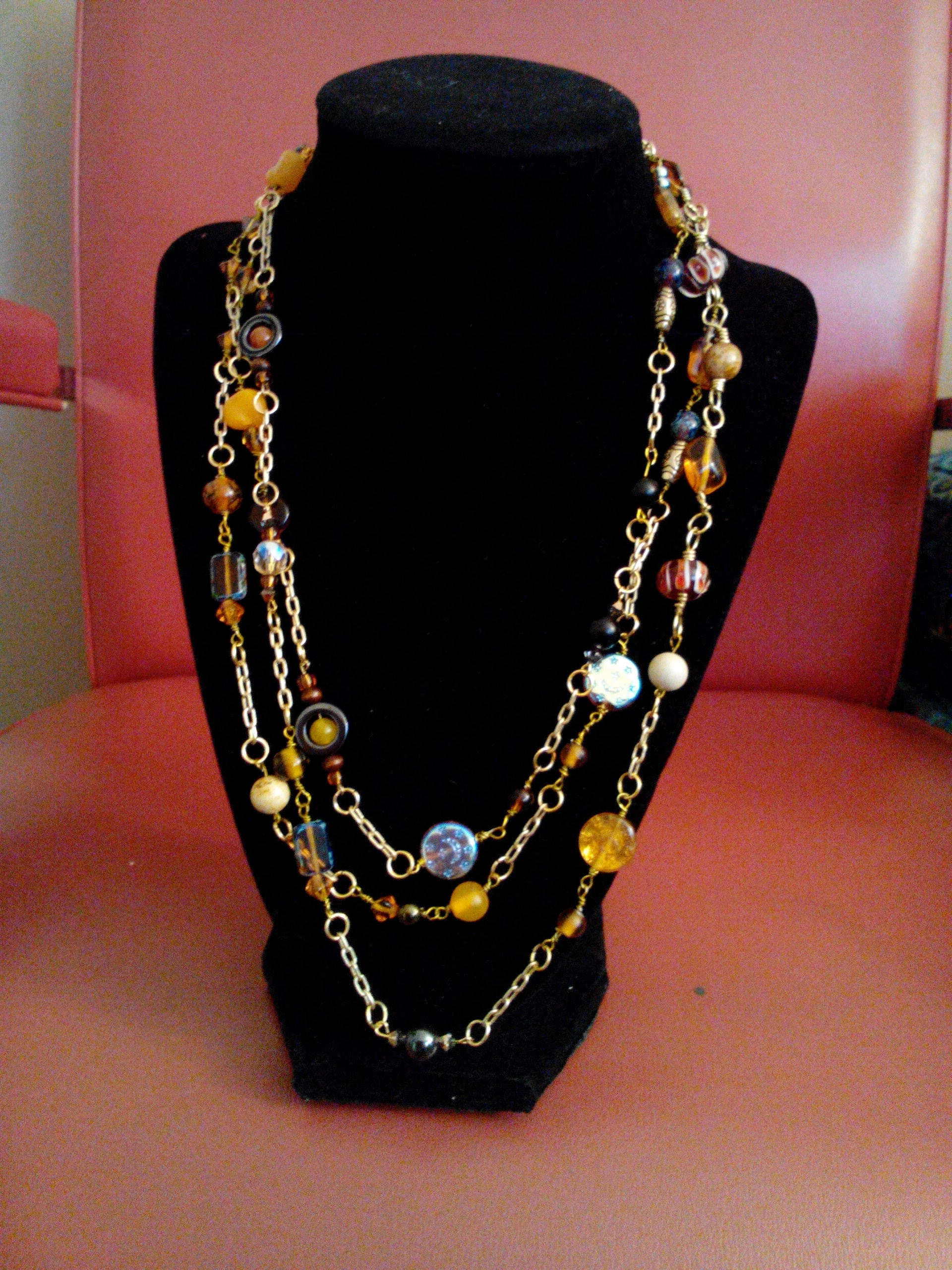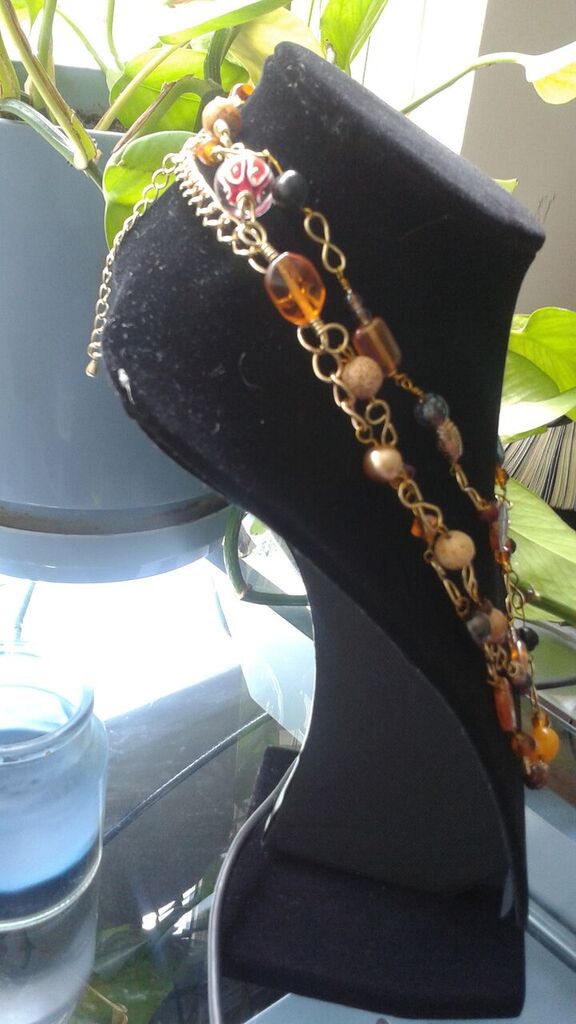 Chain link necklace, designed with various Amber stones, beads and accent spacer beads.