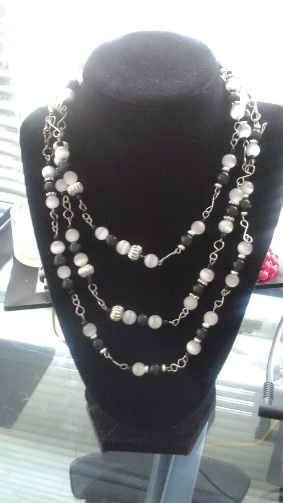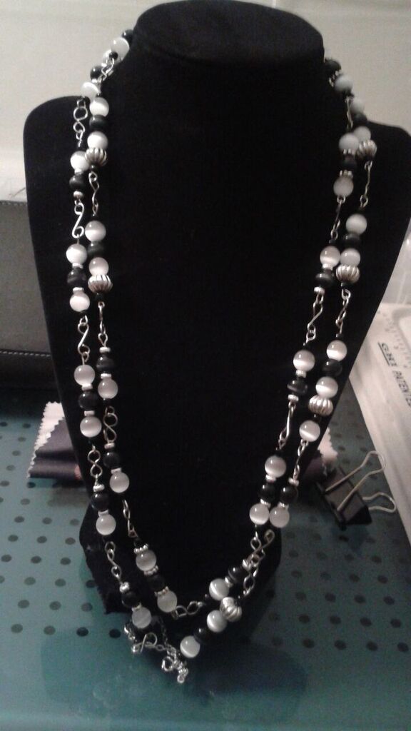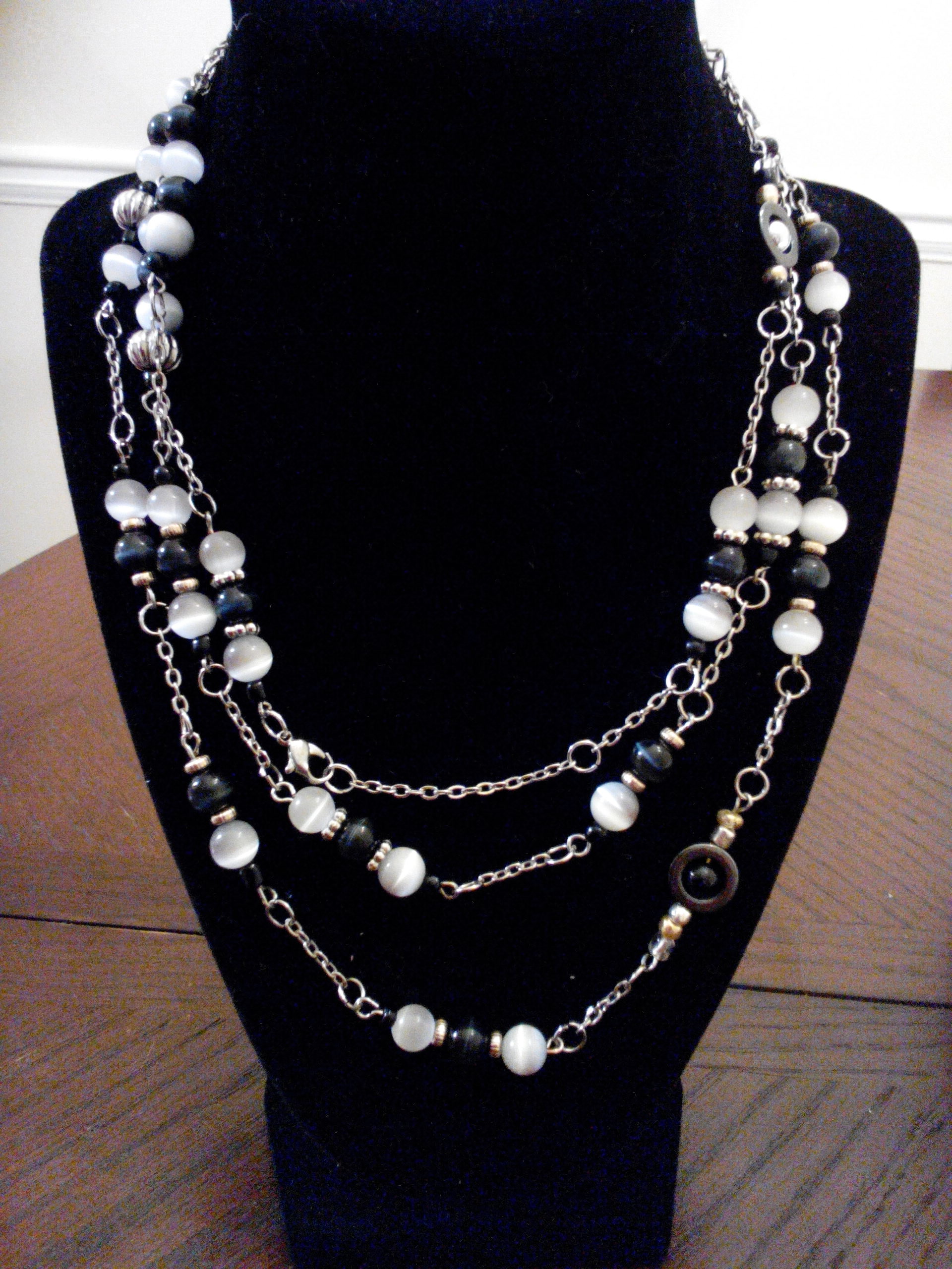 Chain link necklace, designed with onyx and fiber optic white gemstones.
