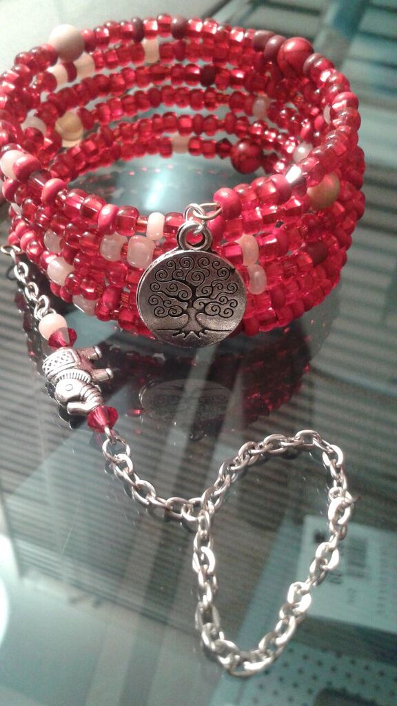 An array of glass seed beads accented with natural gemstones.