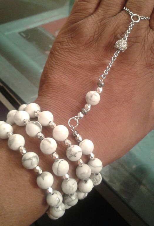 6mm Designed with White Turquoise gemstones and accents of Silver spacer beads with silver plated chain.