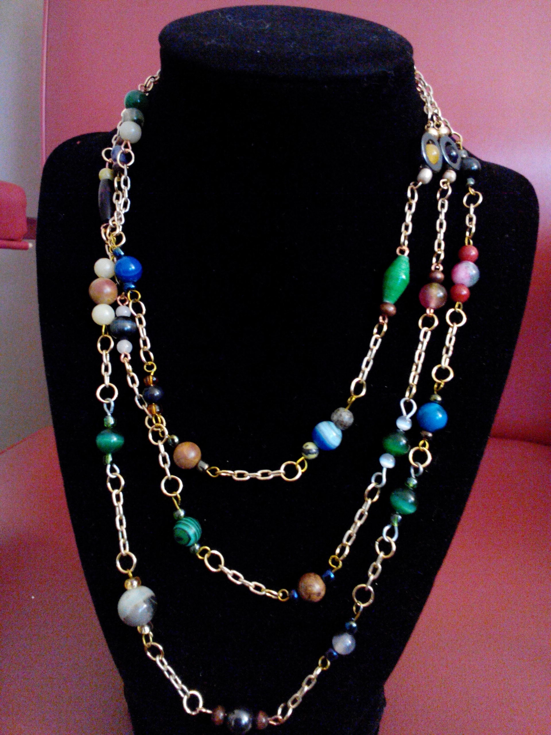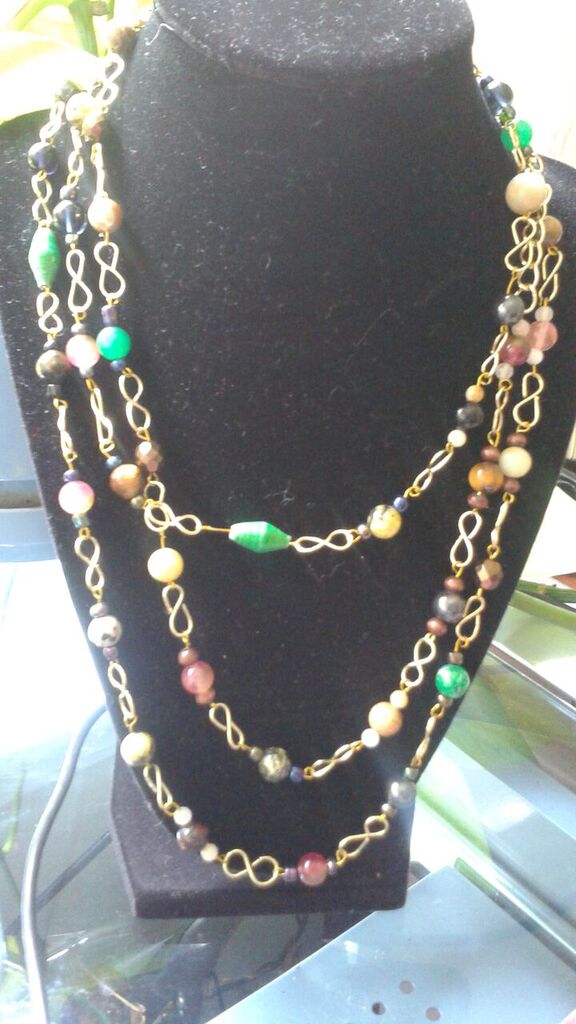 Chain link necklace, designed with assorted Gemstones, Uganda paper beads.
